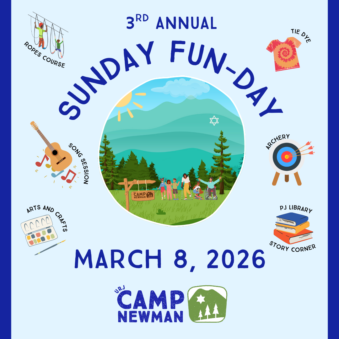 This free event is for those in our community with disabilities and their siblings and adults who love them. We will have plenty of sensory-friendly and accessible camp activities for all including tie dye, s’mores, music, archery, parent discussions, PJ Library Story Corner and art! Families will also be able to explore Camp Newman’s ropes course, hiking trails and gorgeous campus. Lunch will be available for purchase or feel to free to bring your own picnic lunch.